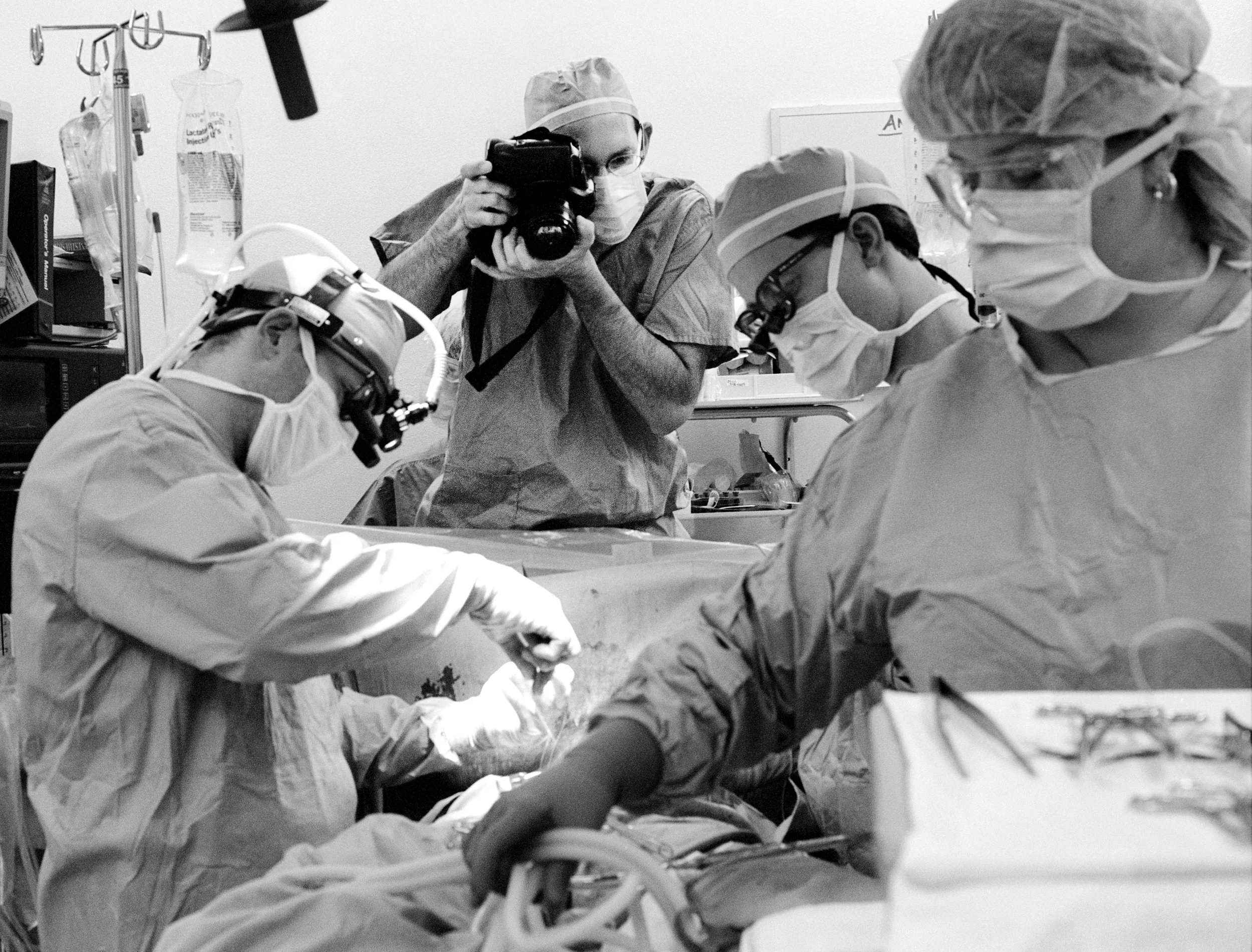 I photograph heart, knee, hand and wrist surgery. I also shoot video of many operations a year (in scrubs).